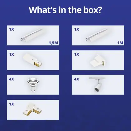 | Herstellername | Complete L shaped 1-Phase Track Set White incl. 4x Spot fixture + GU10 2700K 3W Dim - 1 x 1.5 meters | |