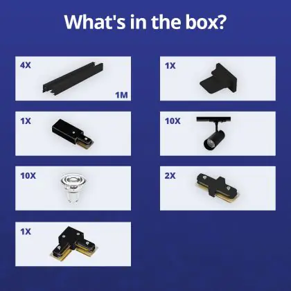 Bright Choice Komplettset 1-Phasen Rail L 2 x 2 Meter Schwarz | incl. 10x Spot + GU10 2700K 3W Dimmbar + Abschlusskappe, Stromanschluss und L -Verbinder
