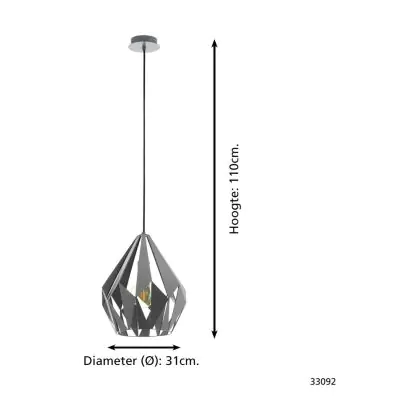 Eglo Pendelleuchte Carlton 1 Stahl Grau | IP20 - Geeignet für 1x E27