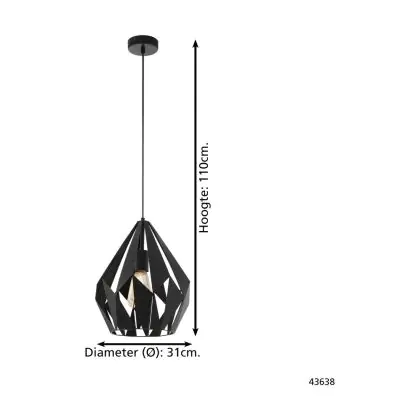 Eglo Pendelleuchte Carlton 1 Stahl Schwarz | IP20 - Geeignet für 1x E27