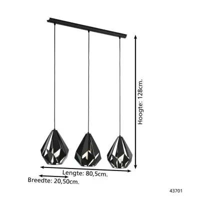 Eglo Pendelleuchte Carlton 5 Stahl Schwarz | IP20 - Geeignet für 3x E27