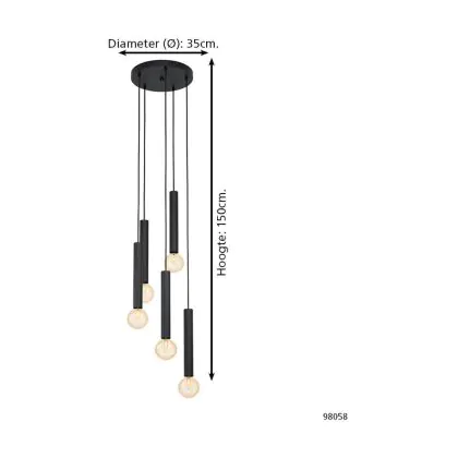 Eglo Pendelleuchte Corteva Stahl Schwarz | IP20 - Geeignet für 5x E27