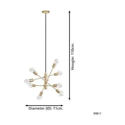 Eglo Pendelleuchte Gradoli 1 Stahl Gold | IP20 - Geeignet für 8x E27