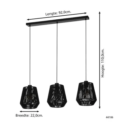 Eglo Pendelleuchte Persley Stahl Schwarz | IP20 - Geeignet für 3x E27