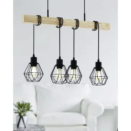 Eglo Pendelleuchte Townshend 5 Stahl Holz Schwarz | IP20 - Geeignet für 4x E27