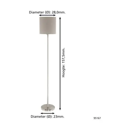 Eglo Stehlampe Pasteri Stahl Satin-Nickel Taupe | IP20 - Geeignet für 1x E27