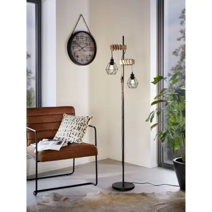 Eglo Stehlampe Townshend 5 Stahl Holz Schwarz | IP20 - Geeignet für 2x E27