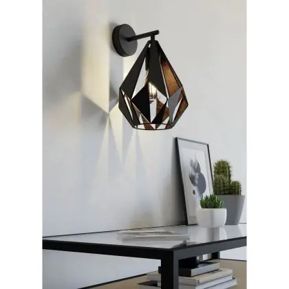 Eglo Wandleuchte Carlton 1 Stahl Schwarz Bernstein | IP20 - Geeignet für 1x E27
