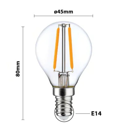 LED E14 Kugel Fadenlampe Klar 2.5W 250lm - 827 | Ersatz für 25W