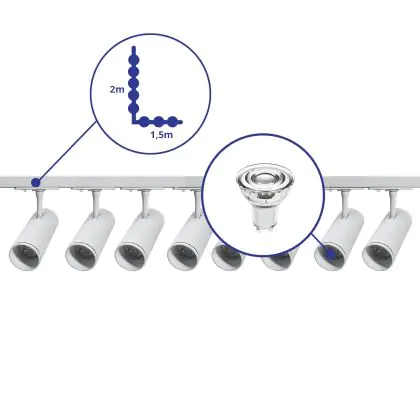 | Nom du fabricant | Complete L shaped 1-Phase Track Set White incl. 8x Spot fixture + GU10 2700K 3W Dim – 1.5 x 2 meters | |