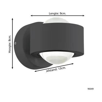 Description Eglo Applique Murale Ono 2 Aluminium Anthracite 2.5W 250lm - 830 Blanc Chaud | IP20