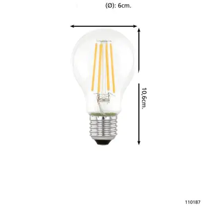 Description Eglo LED Poire E27 Filament Claire 7.3W 806lm - 830 | Remplacement 60W