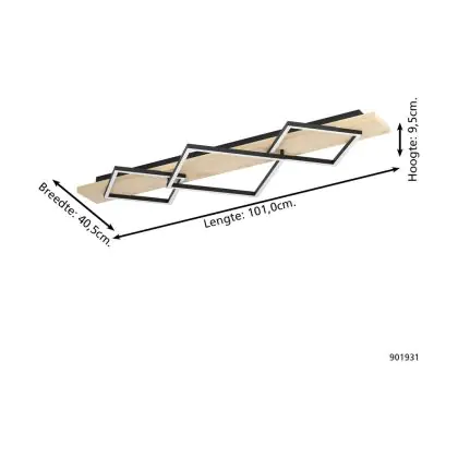Eglo Plafonnier Boyal Échantillon Bois Noir Brun 13W 1750lm - 830 Blanc Chaud | IP20