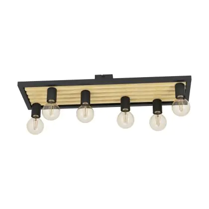 Eglo Plafonnier Consett Échantillon Bois Noir Brun | IP20 - Convient pour 6x E27