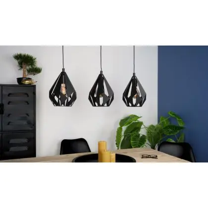 Eglo Suspension Luminaire Carlton 5 Échantillon Noir | IP20 - Convient pour 3x E27