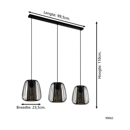 Eglo Suspension Luminaire Curasao Échantillon Noir | IP20 - Convient pour 3x E27