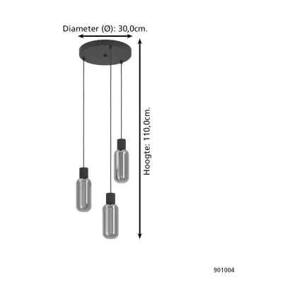 Eglo Suspension Luminaire Maione Échantillon Noir | IP20 - Convient pour 3x E27