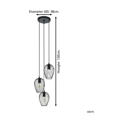 Eglo Suspension Luminaire Newtown Échantillon Noir | IP20 - Convient pour 3x E27