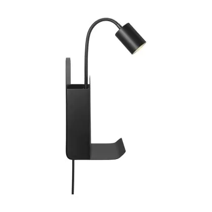 Nordlux Applique Murale Roomi Métal Noir | IP20 - Convient pour 1x GU10 - avec USB
