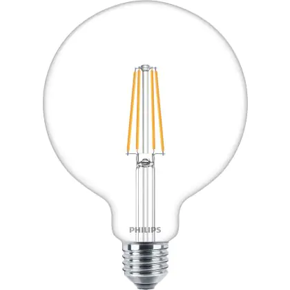 Cette ampoule Philips MASTER Value LED Globe E27 120mm Filament Claire 5.9W 806lm - 927 Blanc Très Chaud | Meilleur rendu des couleurs - Équivalent 60W avec son efficacité lumineuse de lumen par watt vous permettra de profiter d’un éclairage de qualité. Avec sa durée de vie de 15000 heures, vous n’aurez pas à vous soucier de son remplacement avant quelques années.