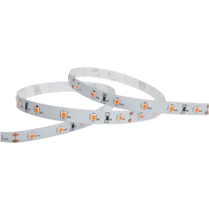 Ce chiffre indique le nombre de points d'éclairage LED par mètre sur le ruban. La règle est la suivante : plus il y a de LED par mètre, plus la lumière/le rendement lumineux est puissant.